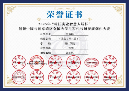 指导的学生作品荣获全国大学生写作比赛一等奖