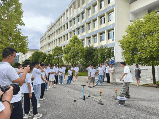 在科普体验环节,孩子们变身“小小航天家”,在志愿者引导下体验了一场趣味横生的“水火箭”发射实验。当一枚枚自制“火箭”拖着水雾冲向蓝天时,孩子们的欢呼声与掌声响彻校园,科学的种子在探索与惊喜中悄然生根。