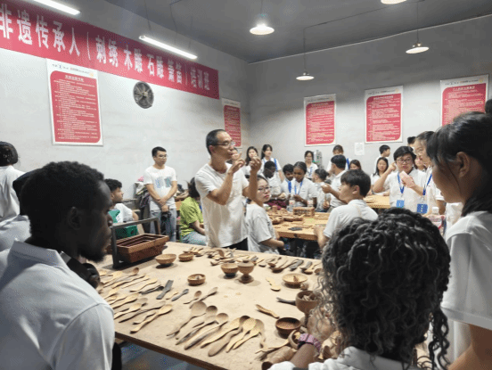 在交流活动中,小朋友们与国际学生、志愿者们一起参观了我校校史馆,了解学校的发展概况,切实感受大学氛围;在体育馆里学习体验了舞龙舞狮课程,在美术楼中感受了木雕石刻的魅力,了解我校在传承发扬中华优秀传统文化和非遗文化技艺的典型做法;在中南门古城,大家深入黔秀非遗传承馆,了解黔秀文化、学习苗绣技艺,感受刺绣的传统技艺之美。