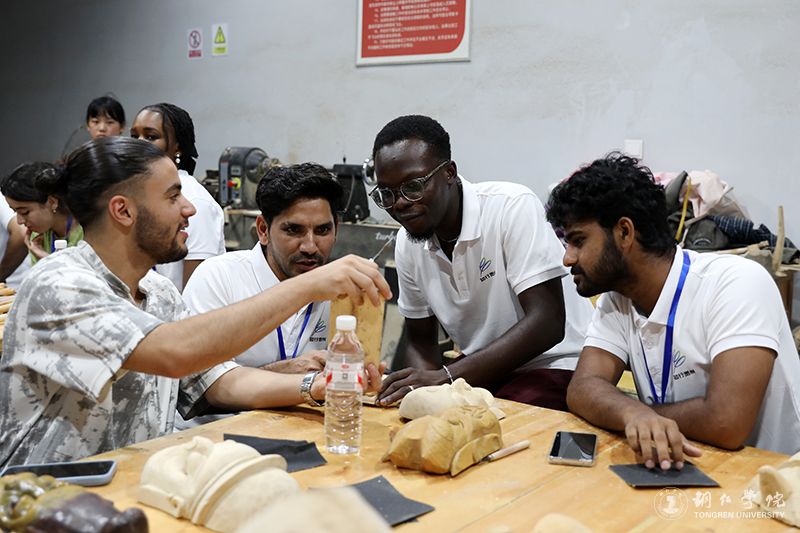 舞龙舞狮、木雕、刺绣、造纸书法、傩戏、抹茶,都承载着独特的历史文化。在铜仁学院里,中外青年学子学习体验了舞龙舞狮和木雕石刻,了解我校在传承发扬中华优秀传统文化和非遗文化技艺的典型做法;在中南门古城,大家深入黔秀非遗传承馆,了解黔秀文化、学习苗绣技艺,感受刺绣的传统技艺之美。在书法之乡印江,大家亲身体验古法造纸,深入学习了解印江合水古法造纸的72道工序,体会中国人民的劳动智慧;参观书法展陈、学习书法、书写汉字,感受书法的文化内涵和品质精神。在傩堂戏艺术之乡德江,大家深入傩戏博物馆参观学习,了解傩戏文化与土家人民的日常生活。大家还到江口抹茶基地,参观抹茶生产线,学习点茶技艺,体验抹茶文化魅力。