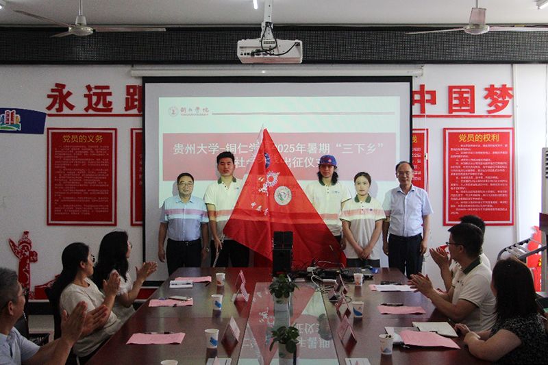 7月14日,贵州大学、铜仁学院、泰国兰实大学联合开展的2025年暑期“三下乡”社会实践活动出征仪式在我校农林工程与规划学院举行。贵州大学农学院党委书记冉龙彪以及相关教师,我校副校长潘学军,农林工程与规划学院党委书记李建新及相关教师,三所高校的实践队员参加仪式。农林工程与规划学院院长米小其主持出征仪式。