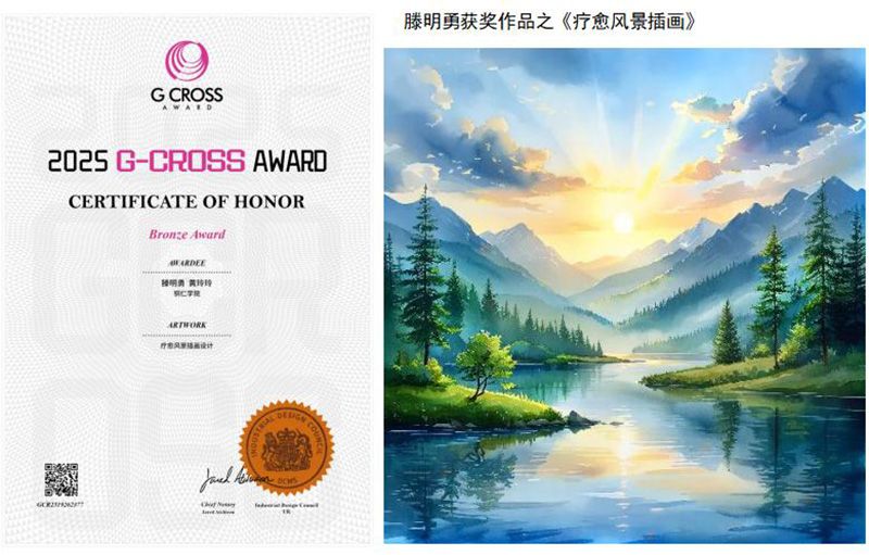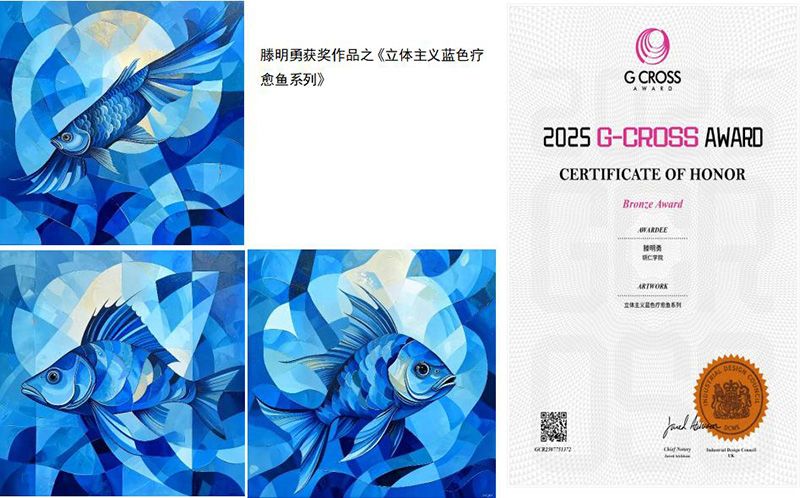 12月15日,我校艺术学院滕明勇教授的《治愈性空间设计》《疗愈风景插画设计》《立体主义蓝色疗愈鱼系列》3件设计作品获得英国工业设计委员会(Industrial Design Council UK)主办的G-CROSS AWARD 大赛中国区铜奖。