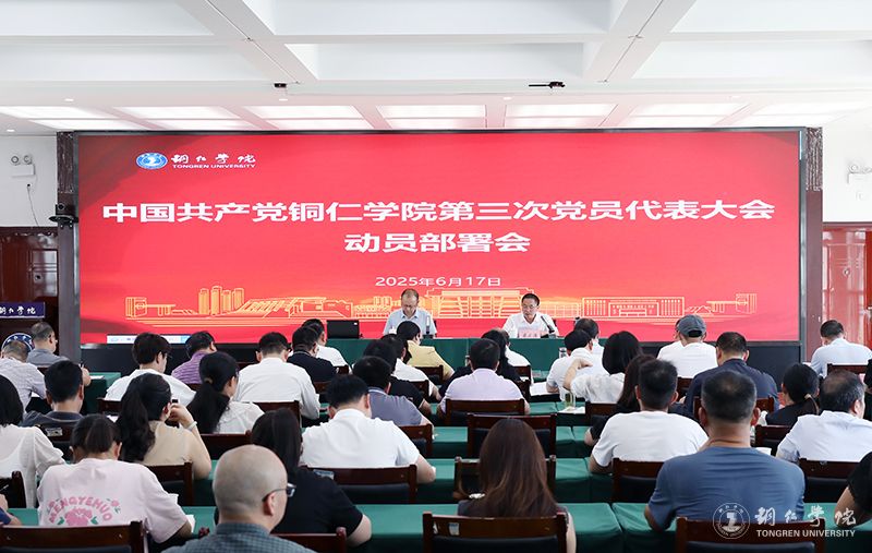6月17日下午,中国共产党铜仁学院第三次党员代表大会动员部署会在行政楼8501会议室召开。会议深入学习贯彻习近平新时代中国特色社会主义思想,全面贯彻落实党的二十大和二十届三中全会精神,动员全校各级党组织和广大党员干部统一思想、凝聚共识,以高度的政治责任感和使命感,高质量做好党员代表大会筹备工作,确保大会胜利召开。